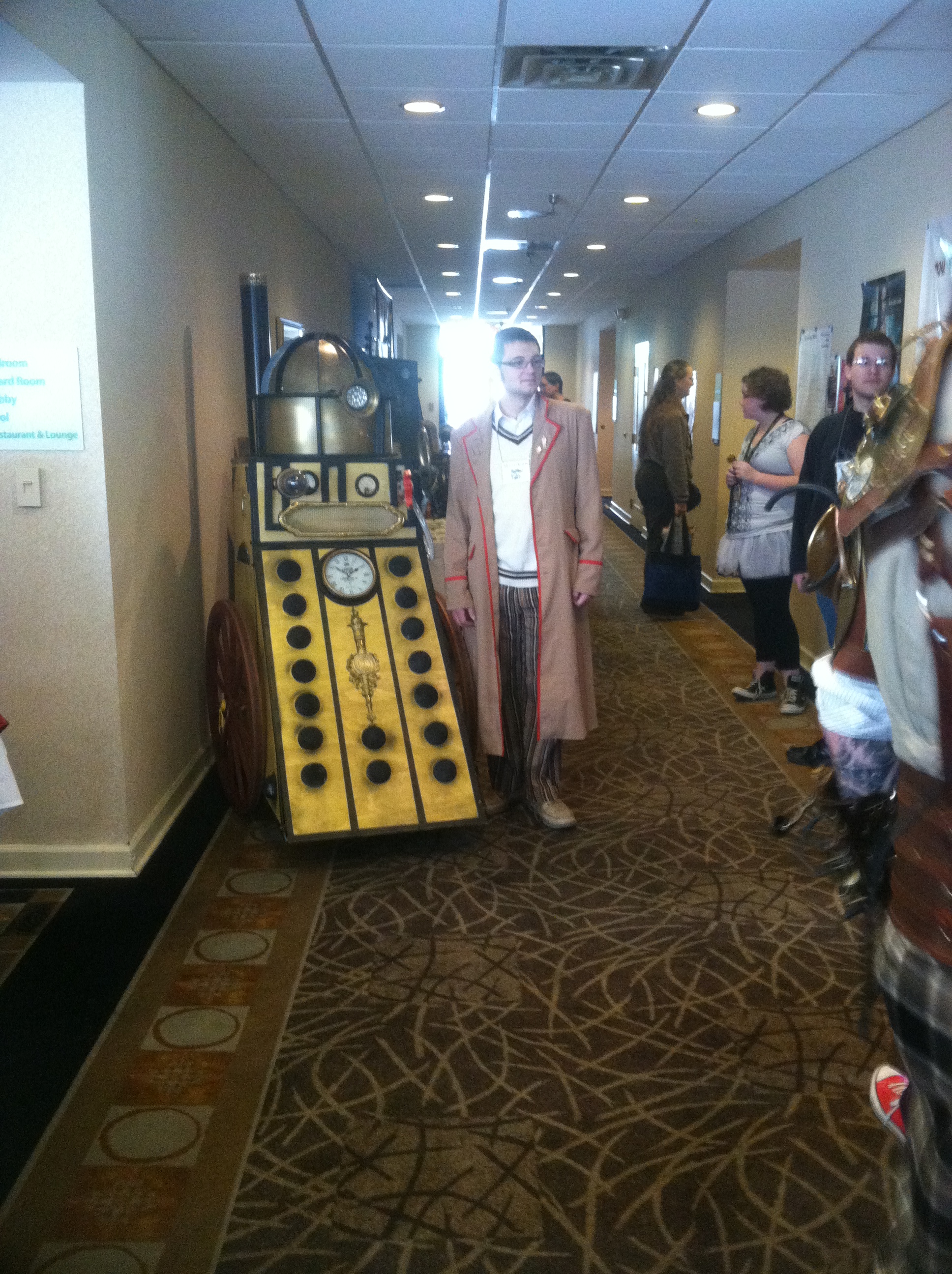 So there I was, trying to figure out what I was going to do next, when suddenly someone told me that the dealer’s room was open. Since the con hadn’t really started yet, I was a bit surprised. But I sauntered in anyway and saw that, despite a lot of vending booths, there wasn’t a lot of things I could see myself wanting. However, I did score a comic book from Travis Surber (author/artist of Hainted Holler), as well as a Dr. WHOrse. Seriously. It’s freaking awesome.